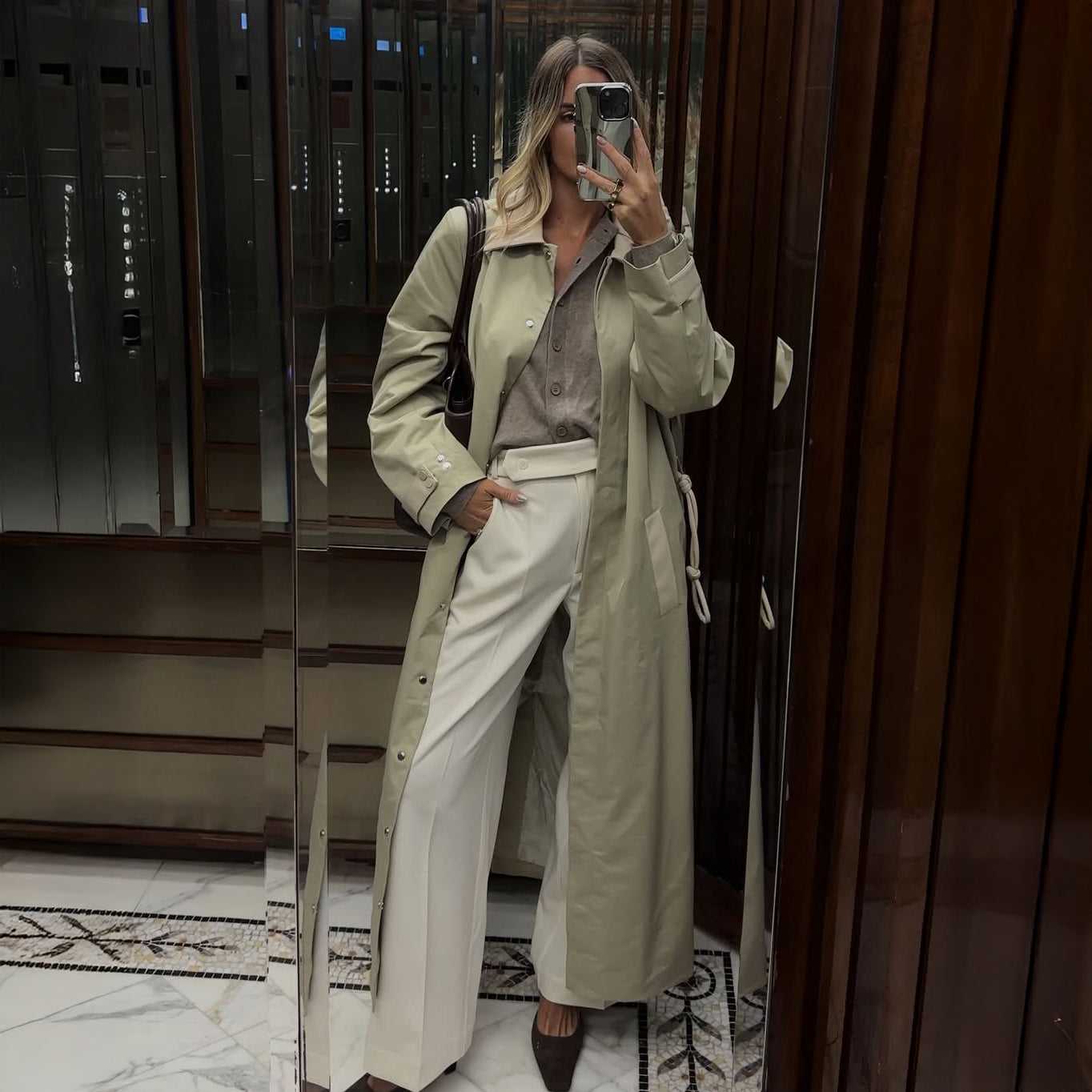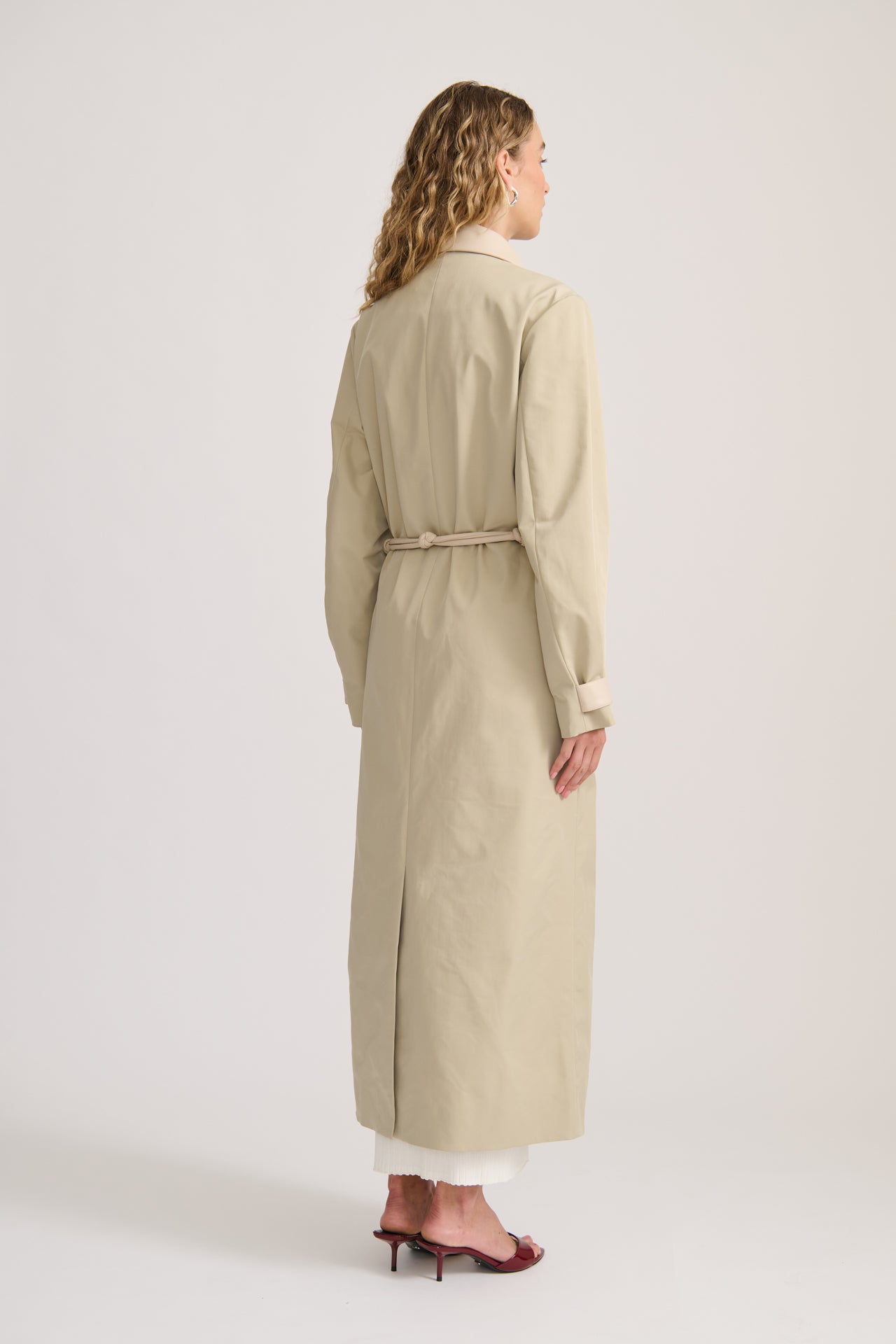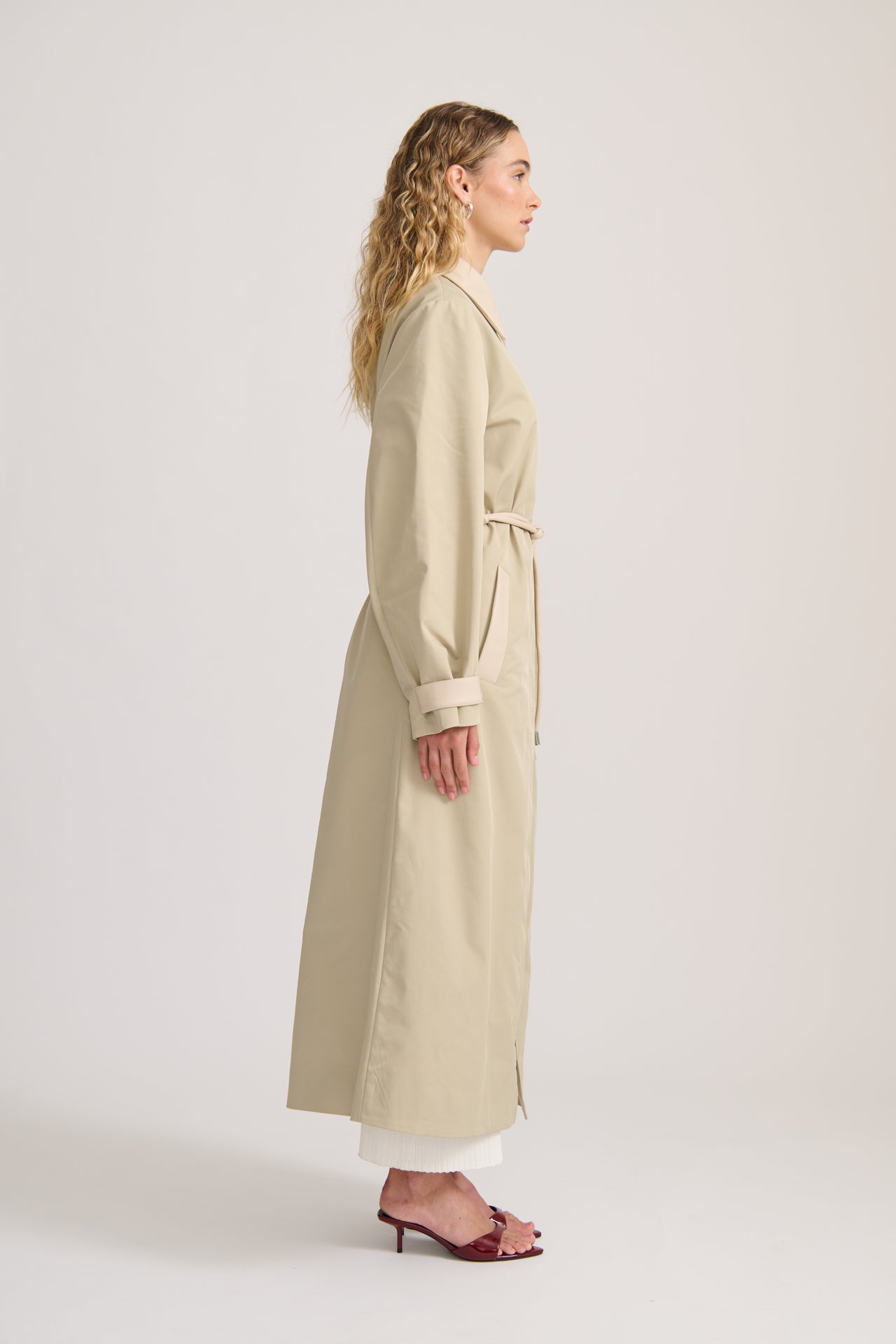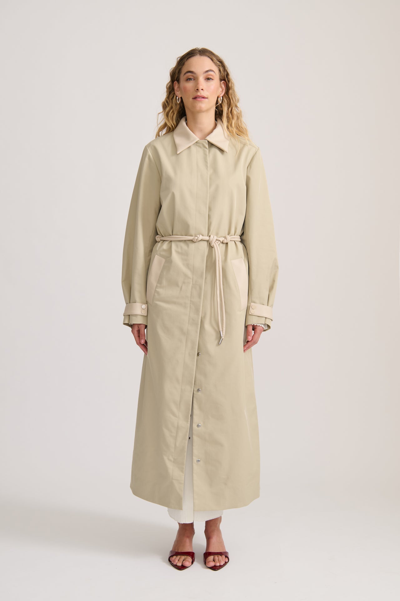 CONTRAST TRENCH COAT LIGHT OLIVE