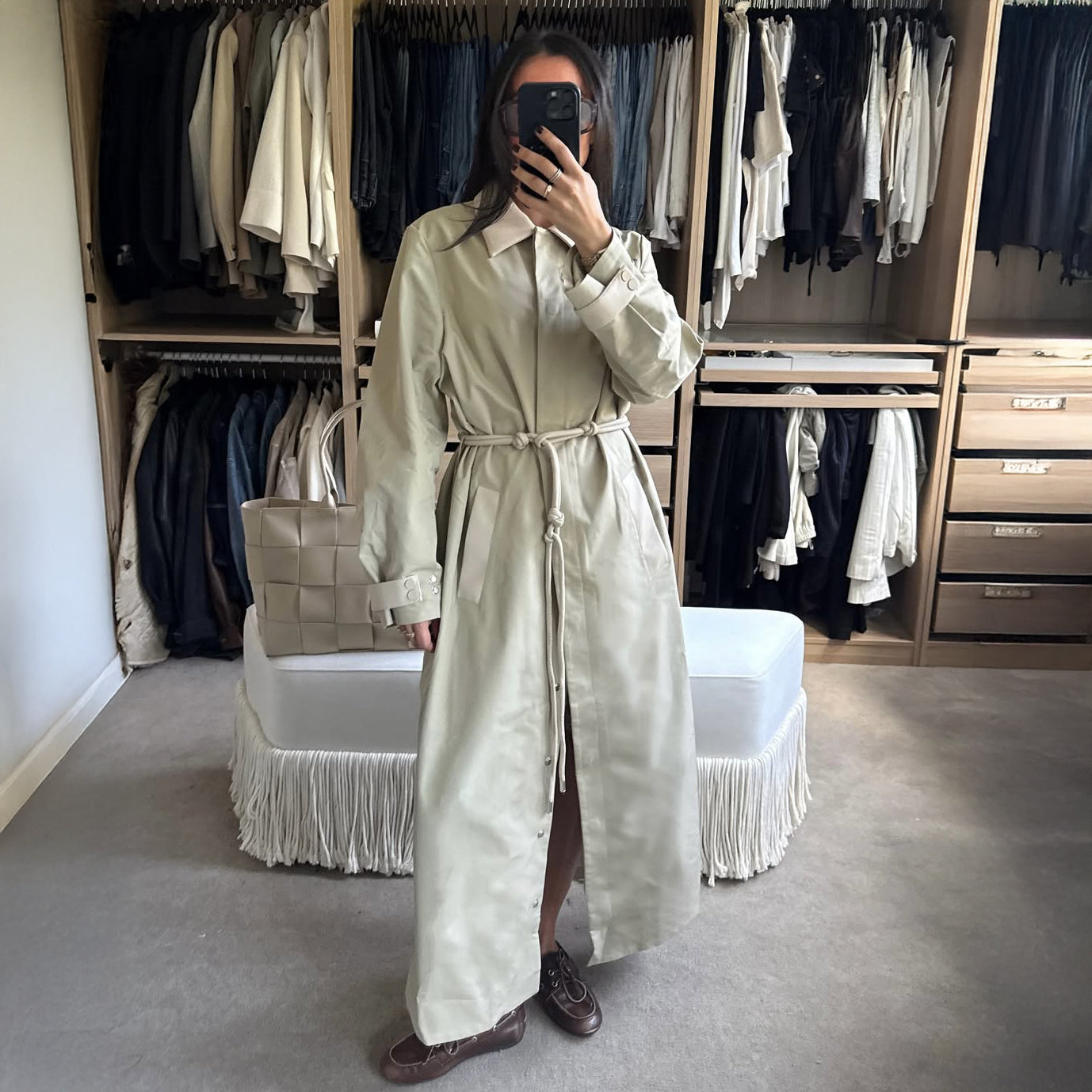 A modern take on a classic silhouette, the Contrast Detail Trench is designed with contrasting PU accents on the collar, pockets, belt, and cuffs for a refined edge. Featuring a concealed front closure with 10 hidden press studs, a detachable knot belt, and an adjustable cuff fit, it offers versatility in styling. Cut to a maxi length with flat contrast pockets, this trench blends structure with effortless sophistication.