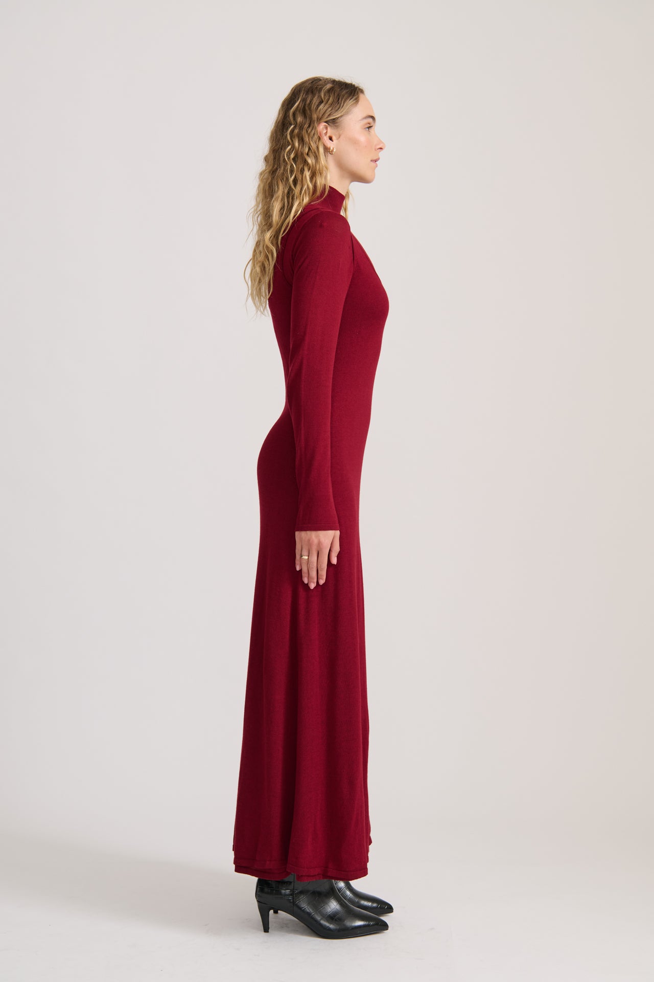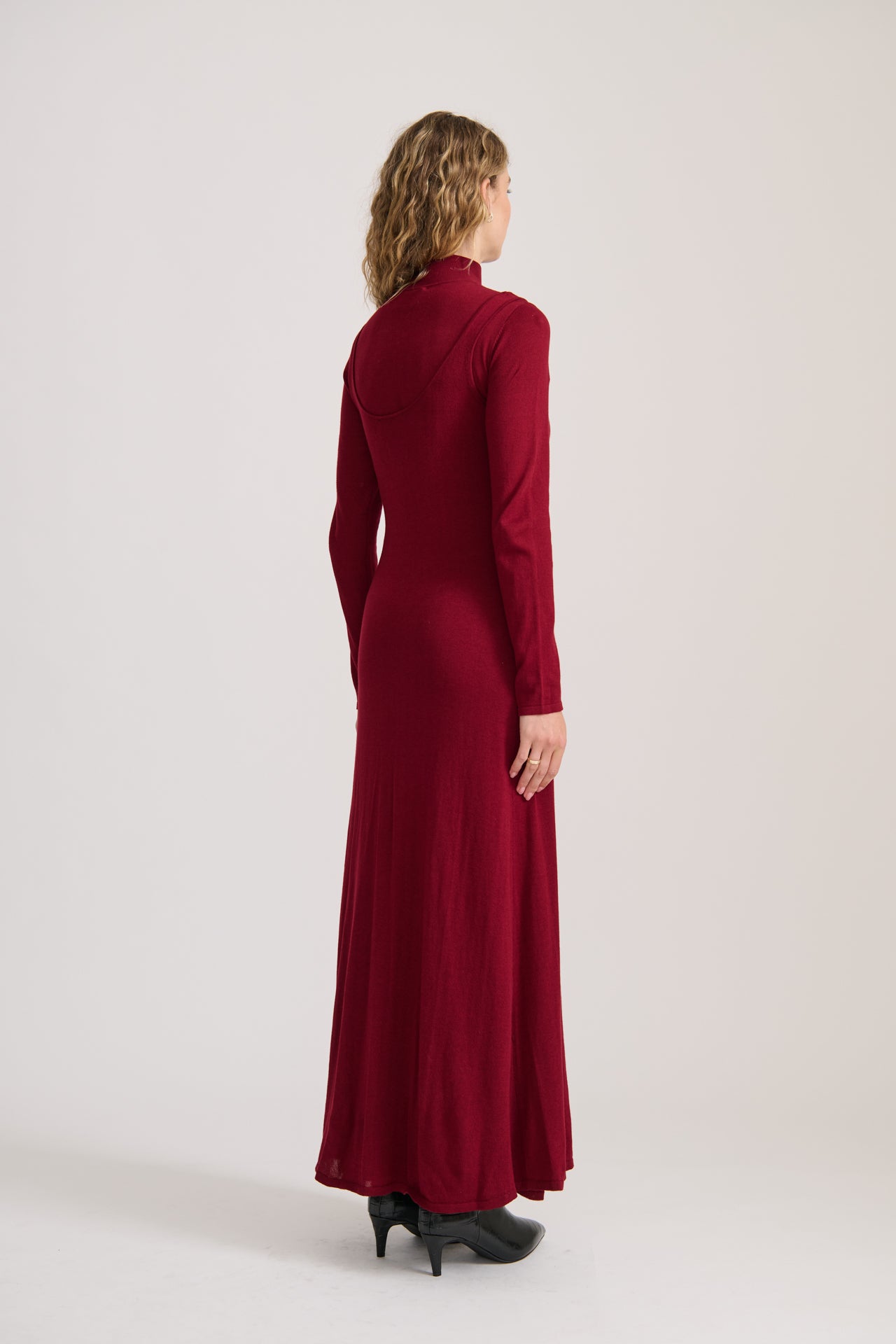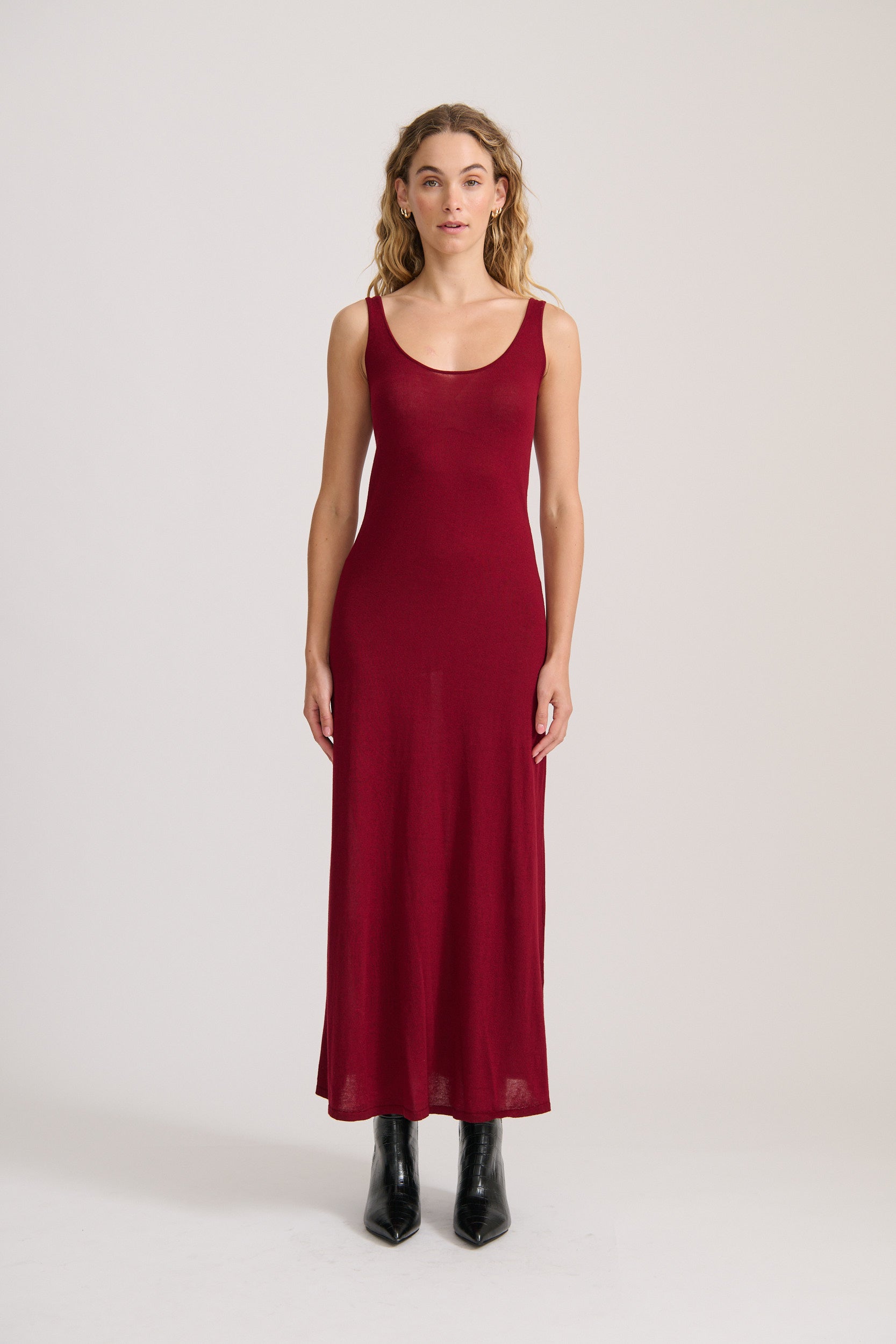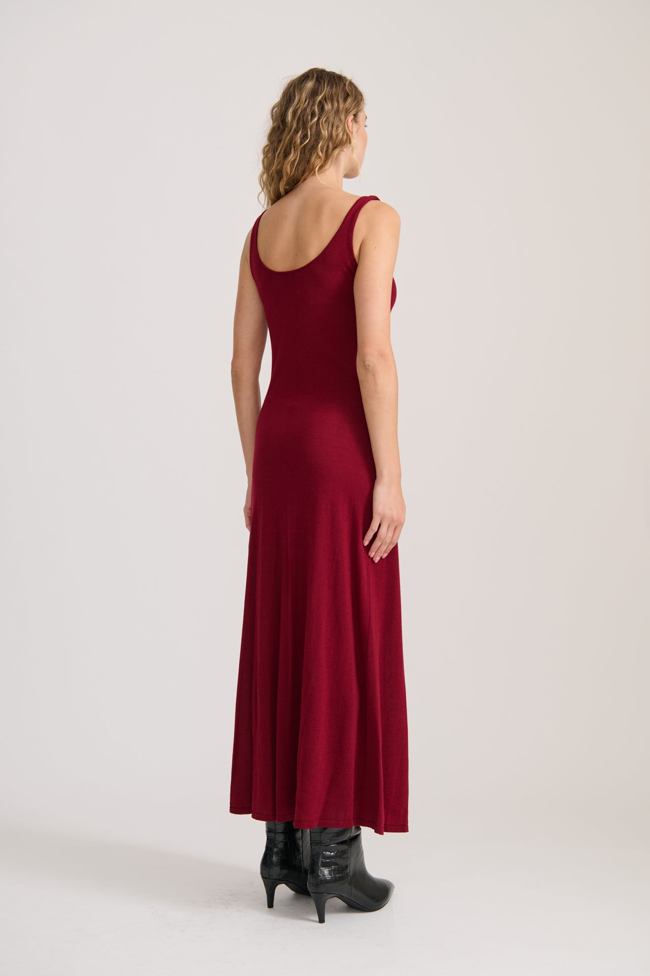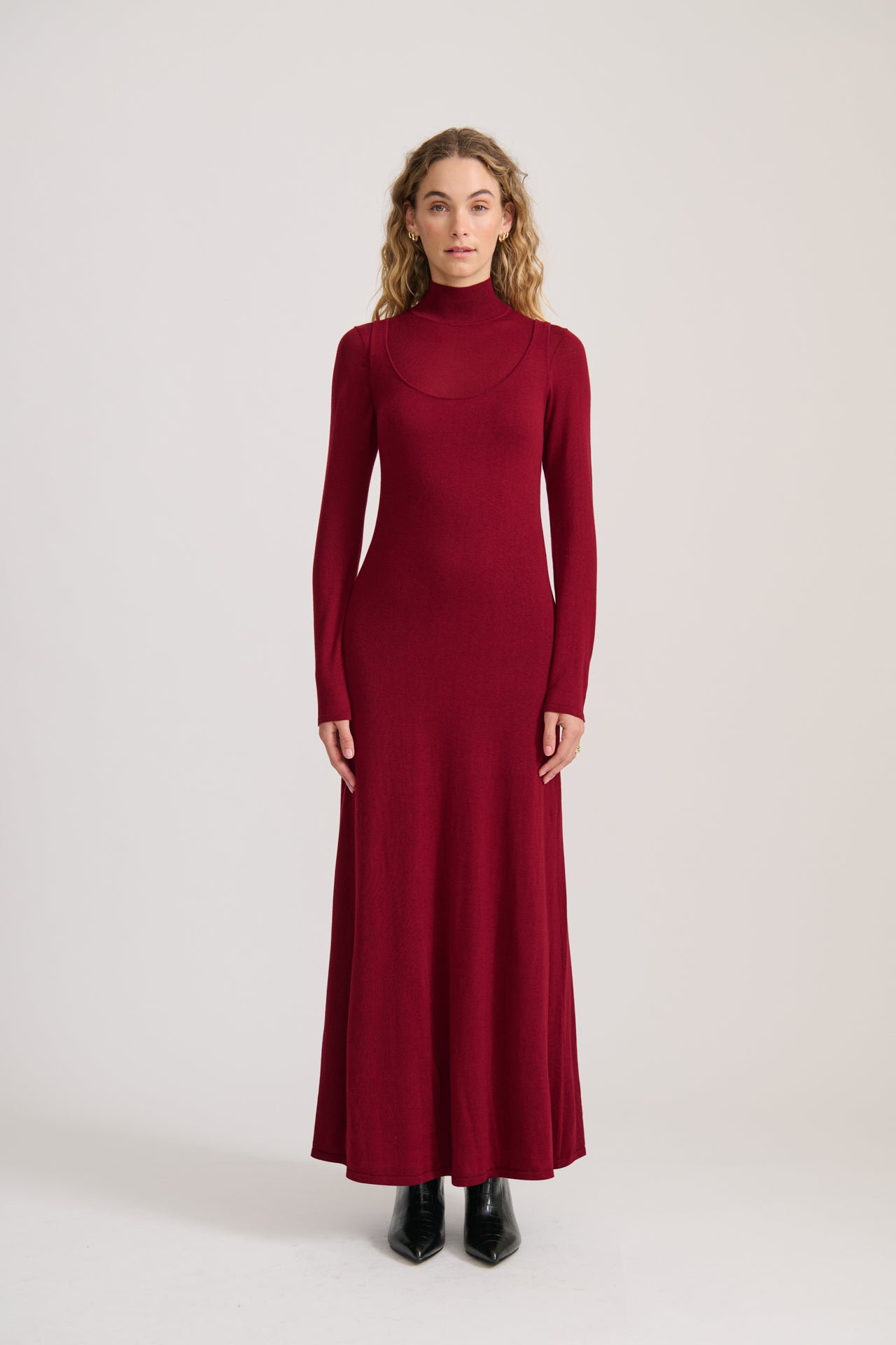 The Fine Knit Maxi Dress in Black is a versatile and refined wardrobe staple. Featuring a high neckline, fitted bust and waist, and a flowing A-line skirt, it creates a flattering silhouette. Designed with fitted sleeves and a detachable singlet dress layered over the top, this set offers multiple styling options — wear it together for a layered look, or style each piece separately. Crafted from a soft lyocell-cotton blend for comfort and ease. Effortless style for any occasion.