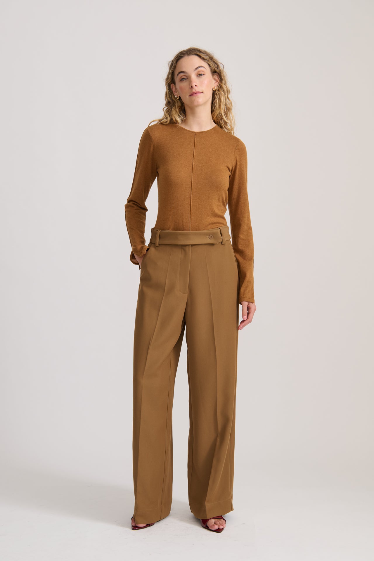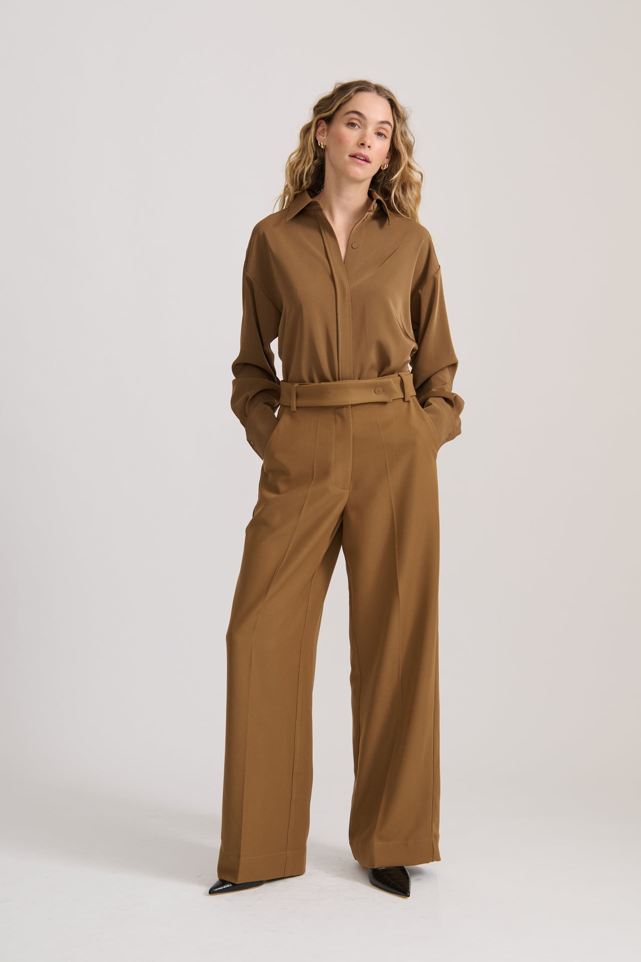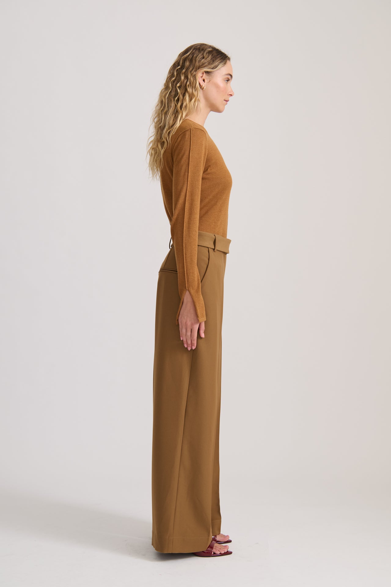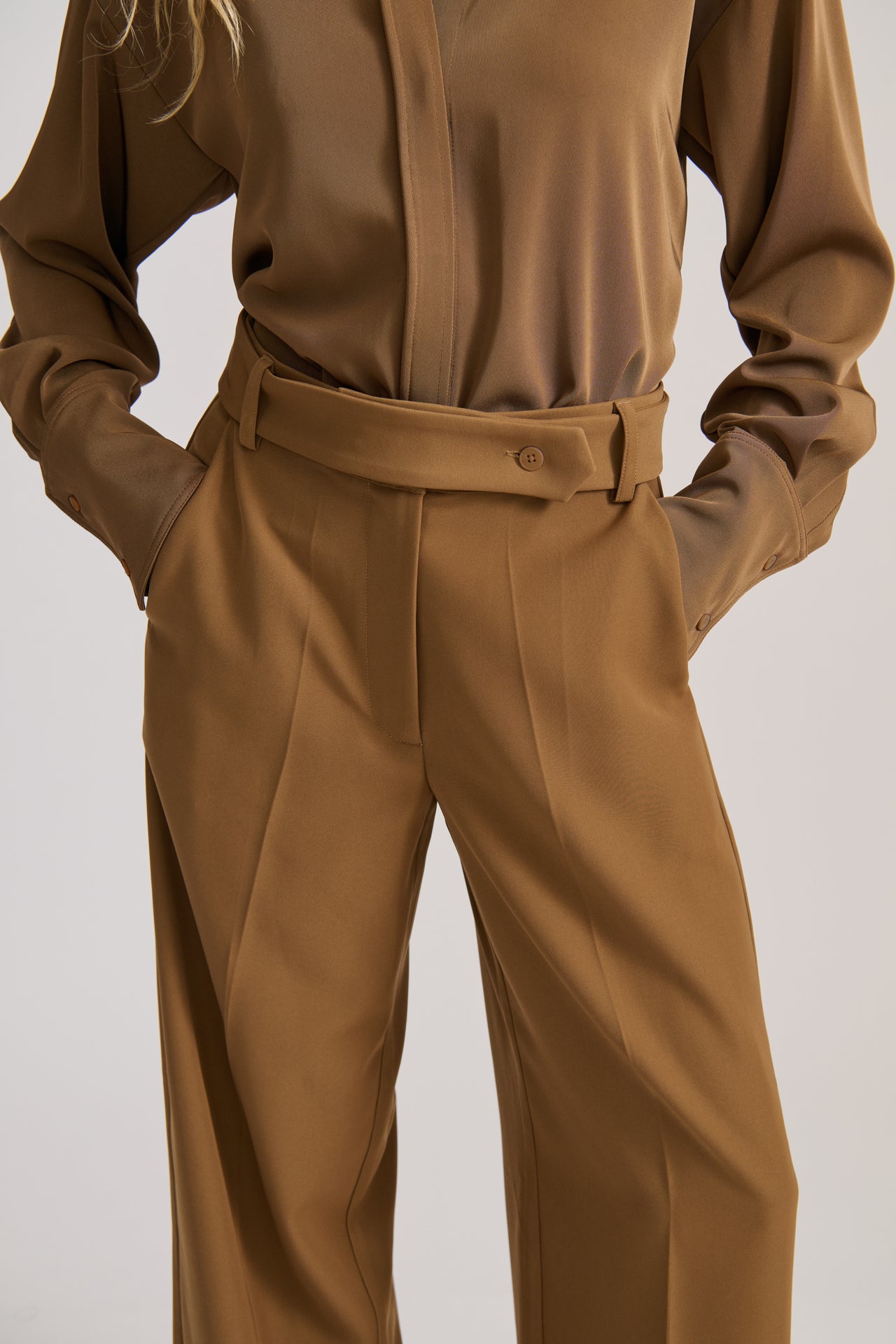 A timeless wardrobe staple, the Tailored Trouser in Rich Cacao is designed for effortless sophistication. Featuring a high-waisted fit with a detachable belt for versatile styling, these full-length trousers are cut in a flattering straight-leg silhouette. Pleats at the front add structure, while functional side pockets and jet pockets offer practicality. Crafted from a premium polyester-spandex blend with 100% cotton pocketing for comfort and durability. Pair with the Sleeveless Wrap Top for an elevated day-to-night look.