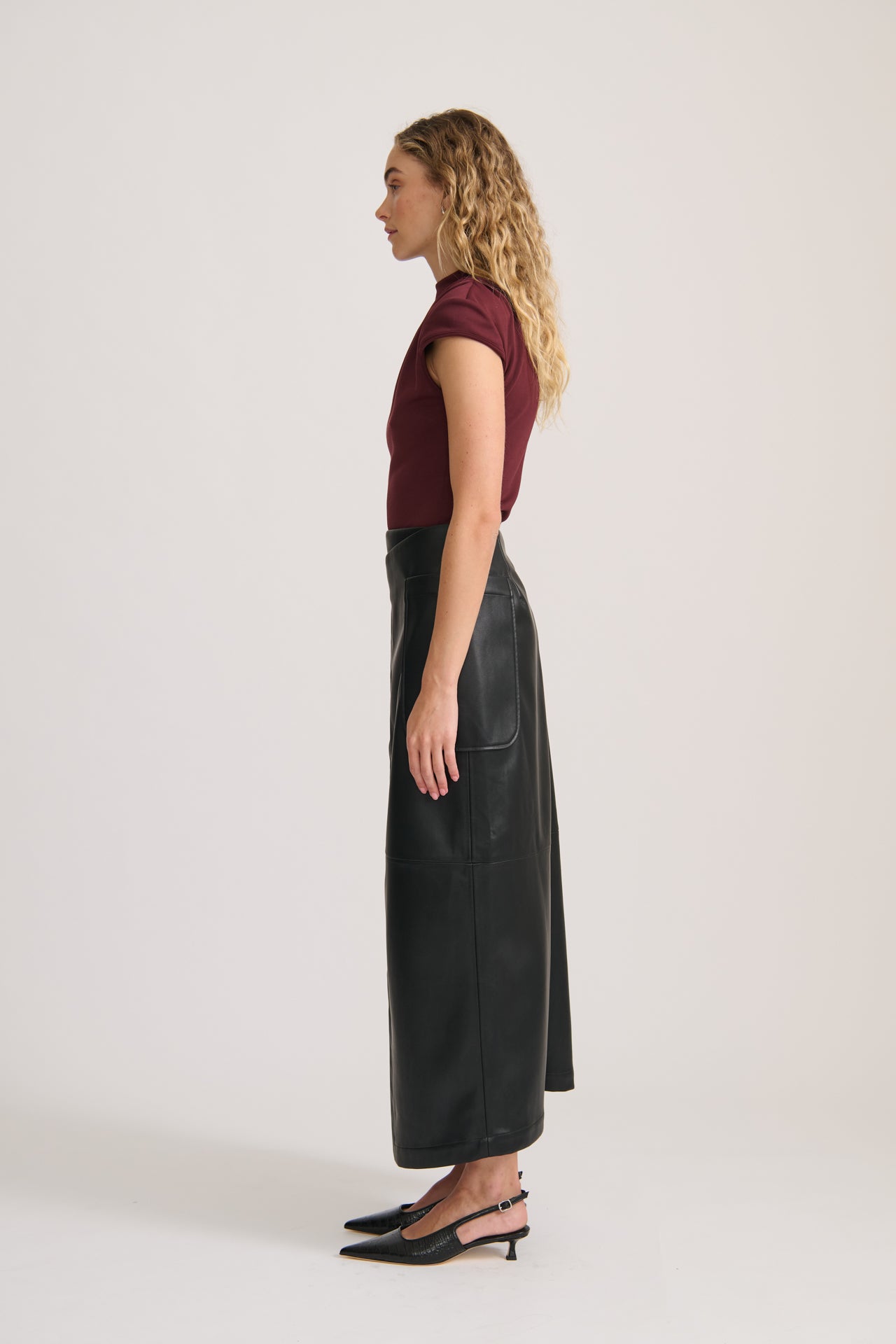 For a coordinated evening look, style it with the Wrap Tunic Vegan Leather Top. Or pair it with a fitted tank and heels for a refined, effortless outfit.