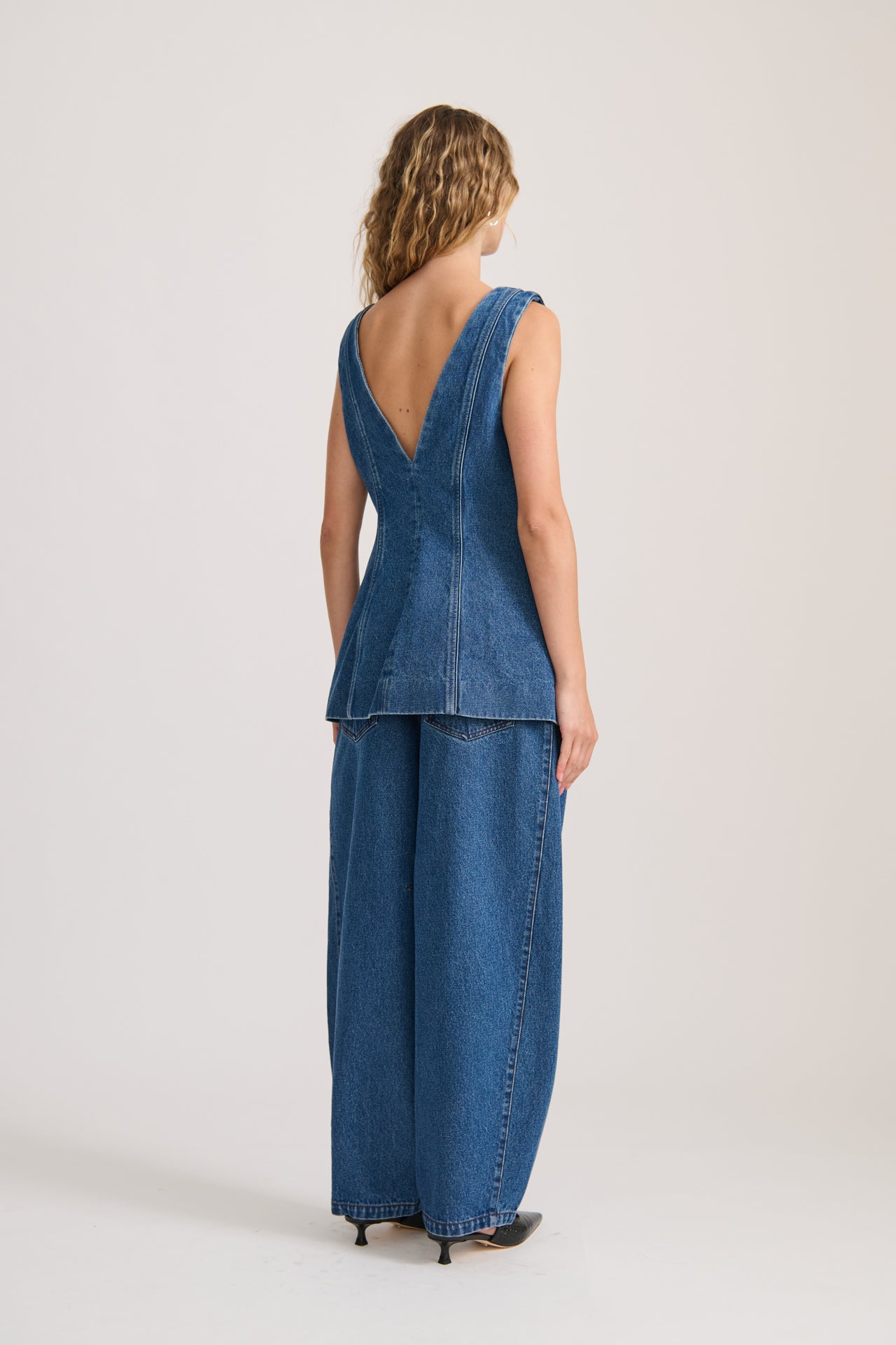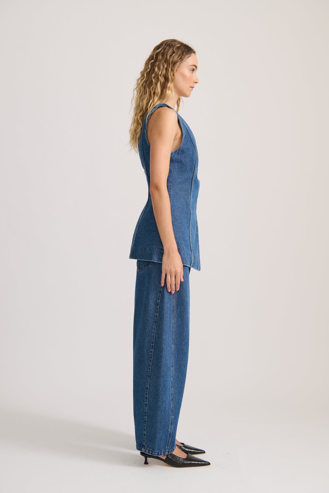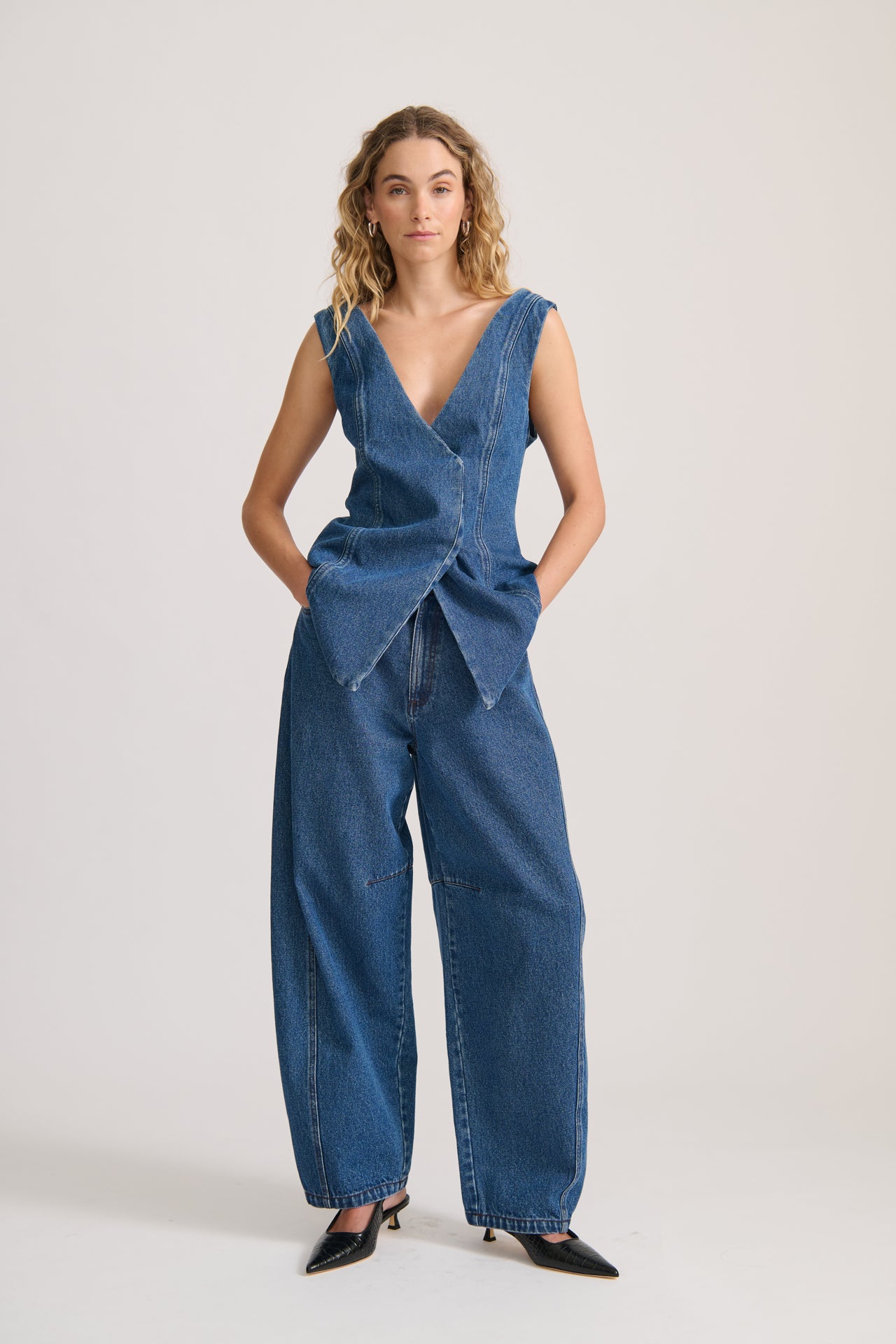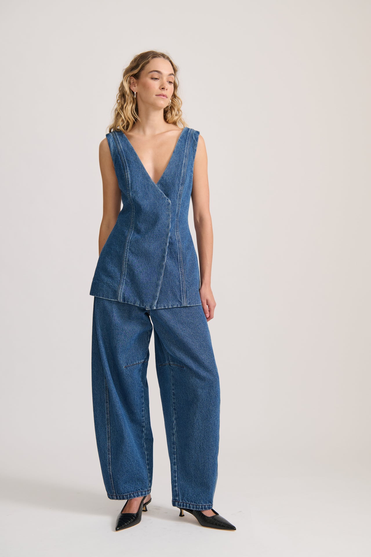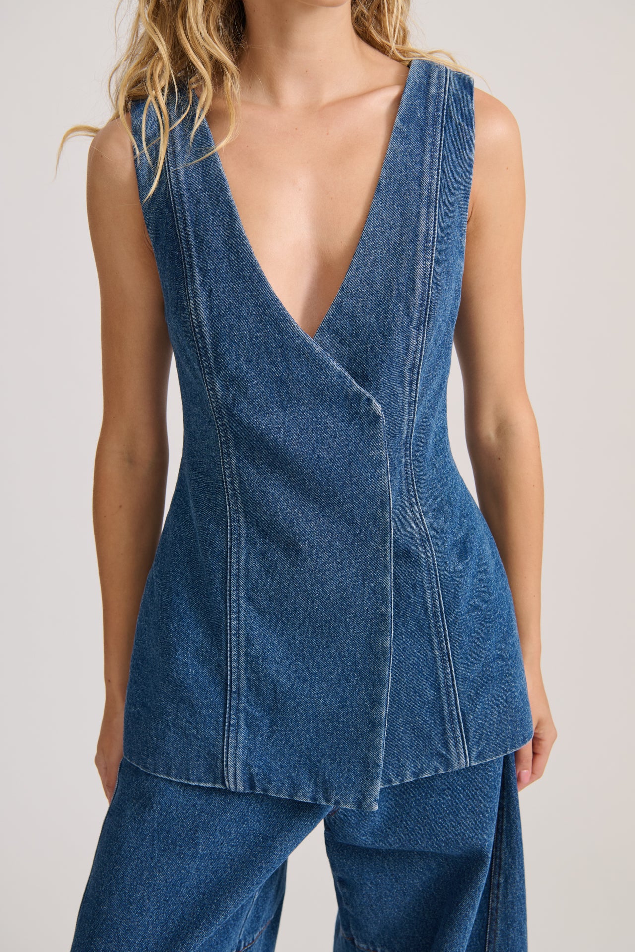 The Wrap Tunic Denim Top in Mid Blue redefines casual elegance. Crafted from 100% cotton, this longline silhouette features a crossover front with concealed press studs, denim piping along princess seams, and an angled back for a flattering fit. Designed with bra keepers for secure wear, it blends structure with ease. A versatile statement piece, perfect for layering or styling solo with tailored or relaxed separates.