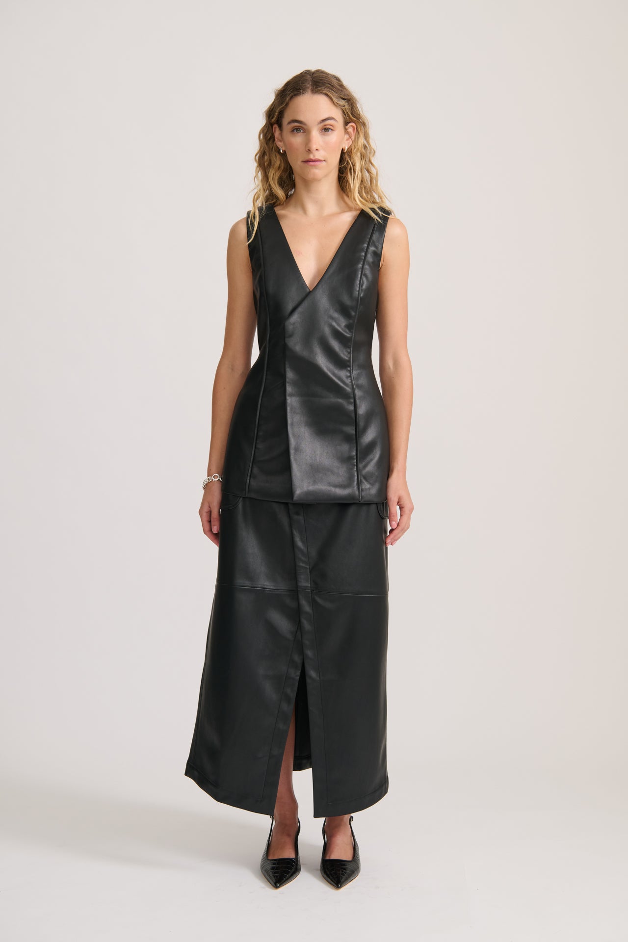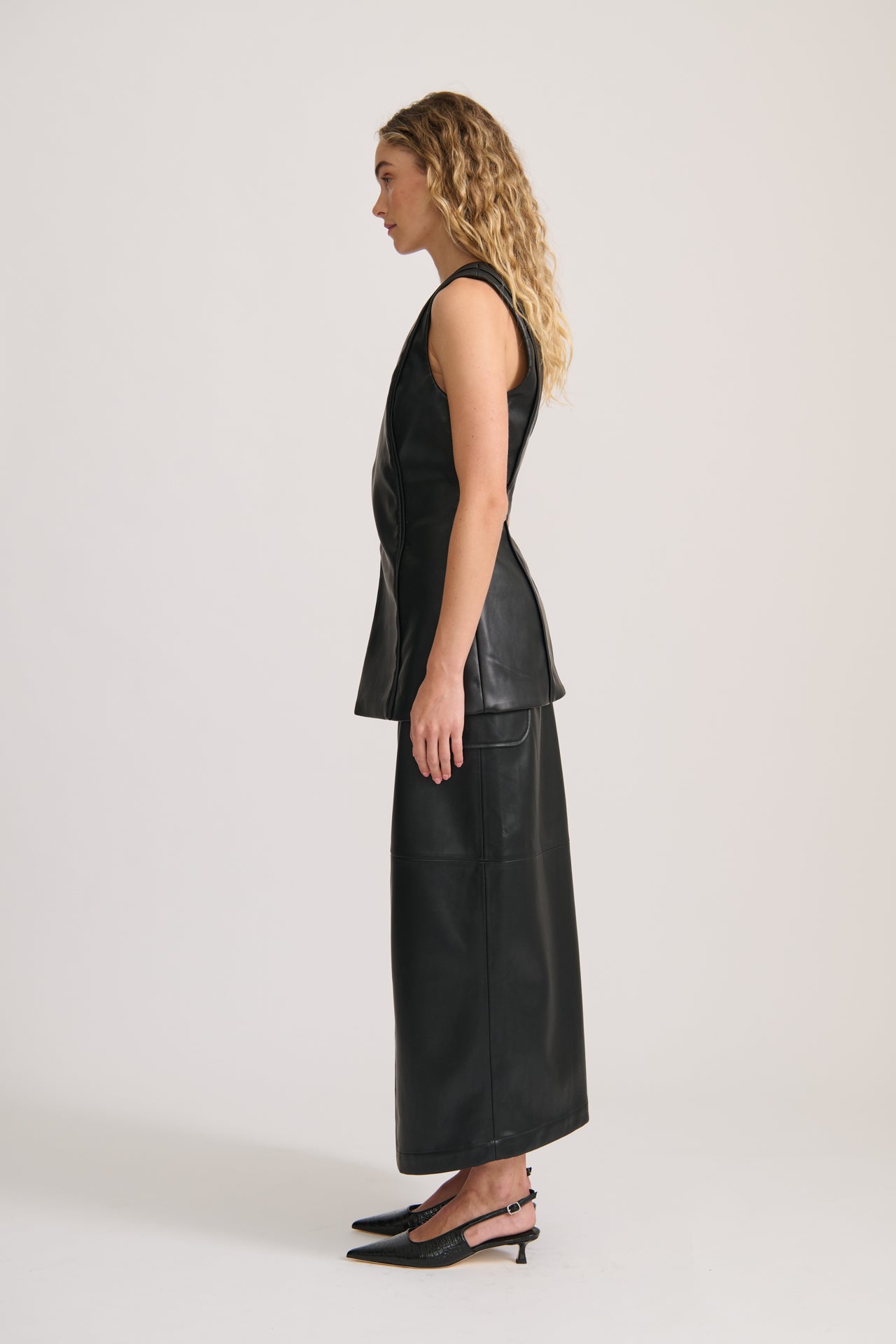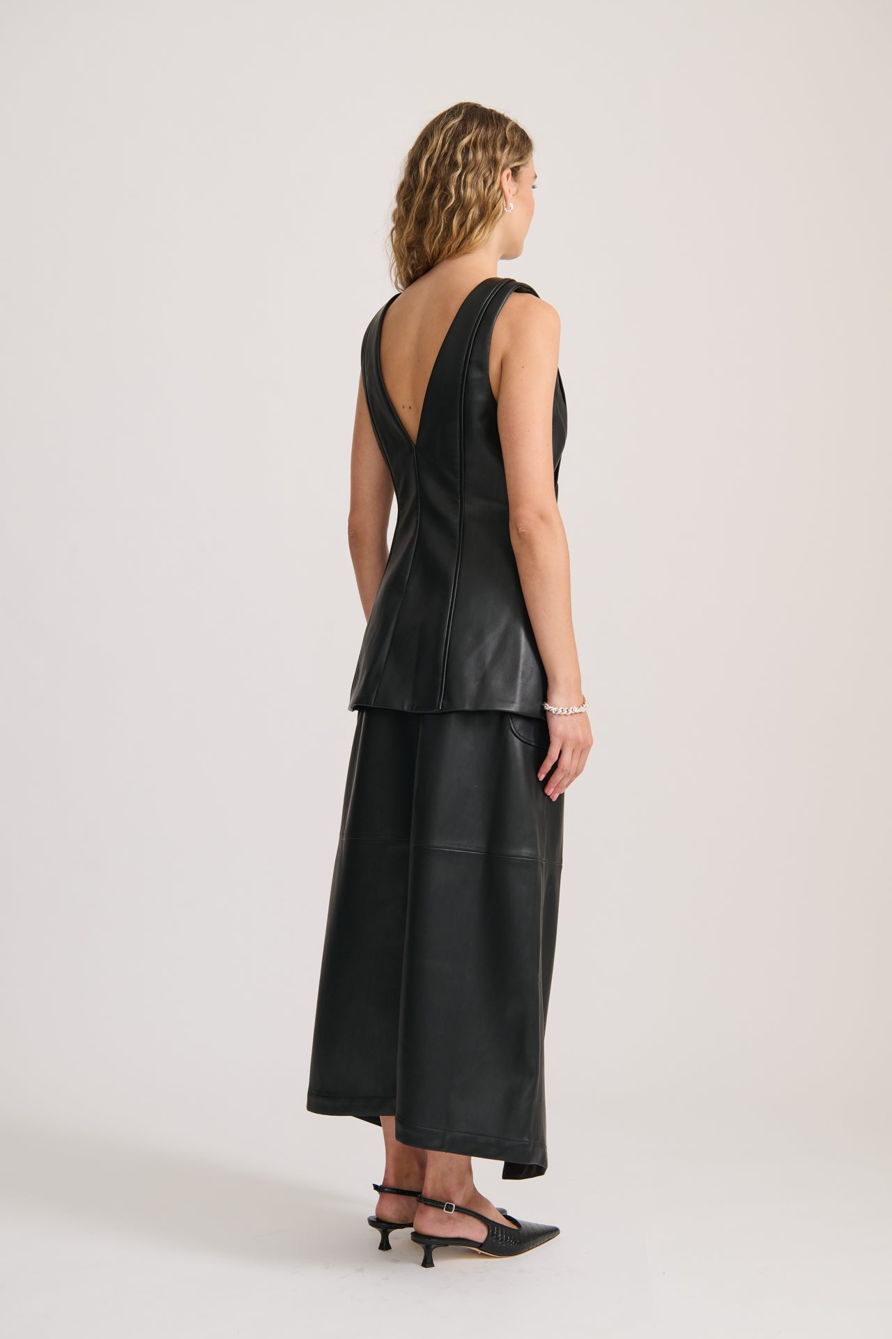For an effortlessly chic evening ensemble, pair it with the Wrap Vegan Leather Skirt. Alternatively, style it with barrel jeans for an elevated off-duty look.